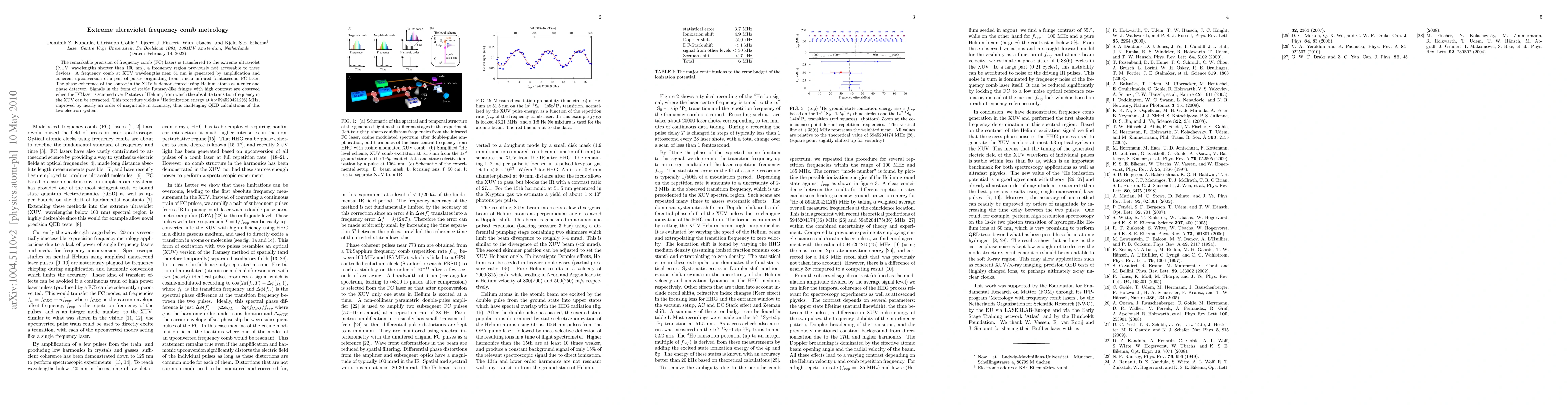 This research develops a frequency comb laser for extreme ultraviolet wavelengths, demonstrating its phase coherence using helium atoms. The method significantly improves the precision of the 4He ionization energy measurement, challenging current quantum electrodynamics calculations.