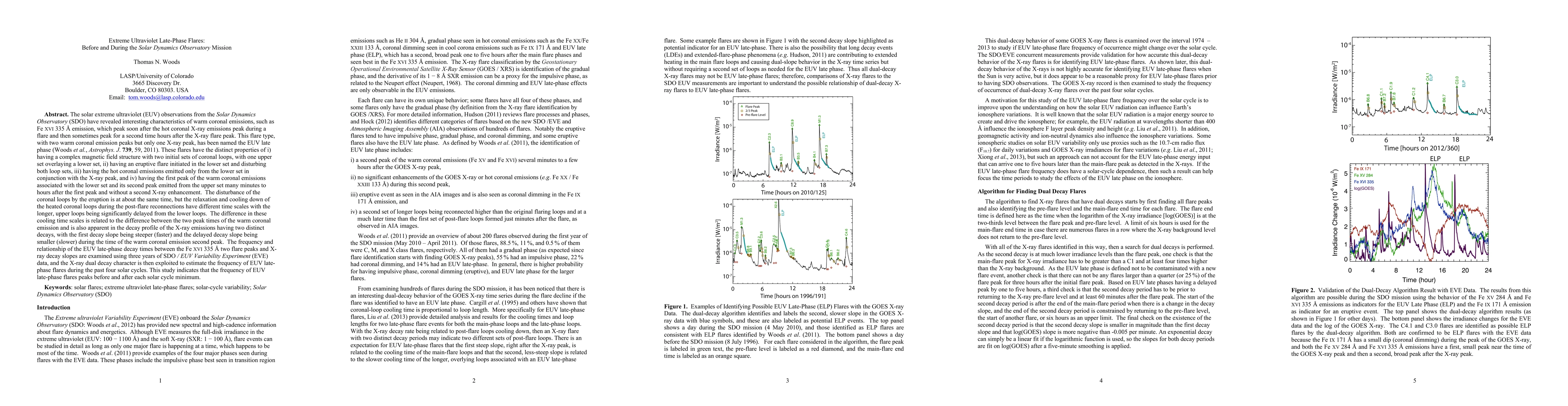 This paper investigates extreme ultraviolet (EUV) late-phase flares observed by the Solar Dynamics Observatory (SDO), characterized by two warm coronal emission peaks following a single X-ray peak. The study reveals complex magnetic structures and different cooling times for upper and lower coronal loops, leading to distinct X-ray decay profiles. The frequency of these flares peaks before and after solar cycle minima.