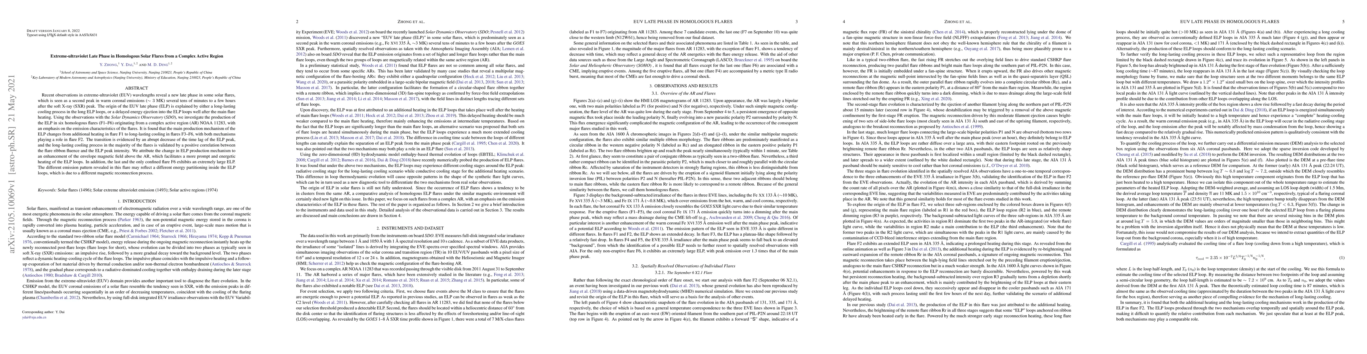 Recent observations in extreme-ultraviolet (EUV) wavelengths reveal a new late phase in some solar flares, which is seen as a second peak in warm coronal emissions ($\sim3$ MK) several tens of minutes to a few hours after the soft X-ray (SXR) peak. The origin of the EUV late phase (ELP) is explained by either a long-lasting cooling process in the long ELP loops, or a delayed energy ejection into the ELP loops well after the main flare heating. Using the observations with the \emph{Solar Dynamics Observatory} (\emph{SDO}), we investigate the production of the ELP in six homologous flares (F1--F6) originating from a complex active region (AR) NOAA 11283, with an emphasis on the emission characteristics of the flares. It is found that the main production mechanism of the ELP changes from additional heating in flare F1 to long-lasting cooling in flares F3--F6, with both mechanisms playing a role in flare F2. The transition is evidenced by an abrupt decrease of the time lag of the ELP peak, and the long-lasting cooling process in the majority of the flares is validated by a positive correlation between the flare ribbon fluence and the ELP peak intensity. We attribute the change in ELP production mechanism to an enhancement of the envelope magnetic field above the AR, which facilitates a more prompt and energetic heating of the ELP loops. In addition, the last and the only confined flare F6 exhibits an extremely large ELP. The different emission pattern revealed in this flare may reflect a different energy partitioning inside the ELP loops, which is due to a different magnetic reconnection process.