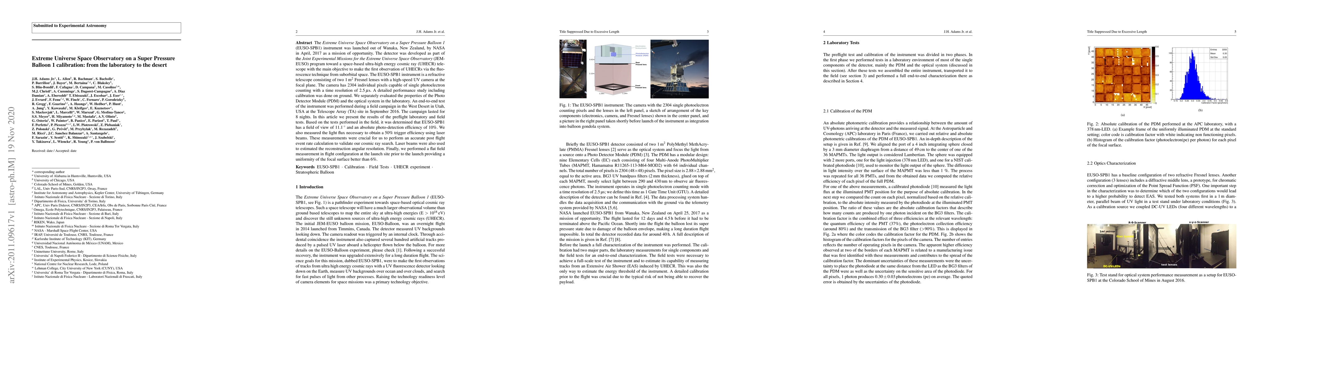 The EUSO-SPB1 instrument successfully conducted preflight laboratory and field tests, revealing a 11.1° field of view and an absolute photo-detection efficiency of 10%, crucial for validating cosmic ray searches.