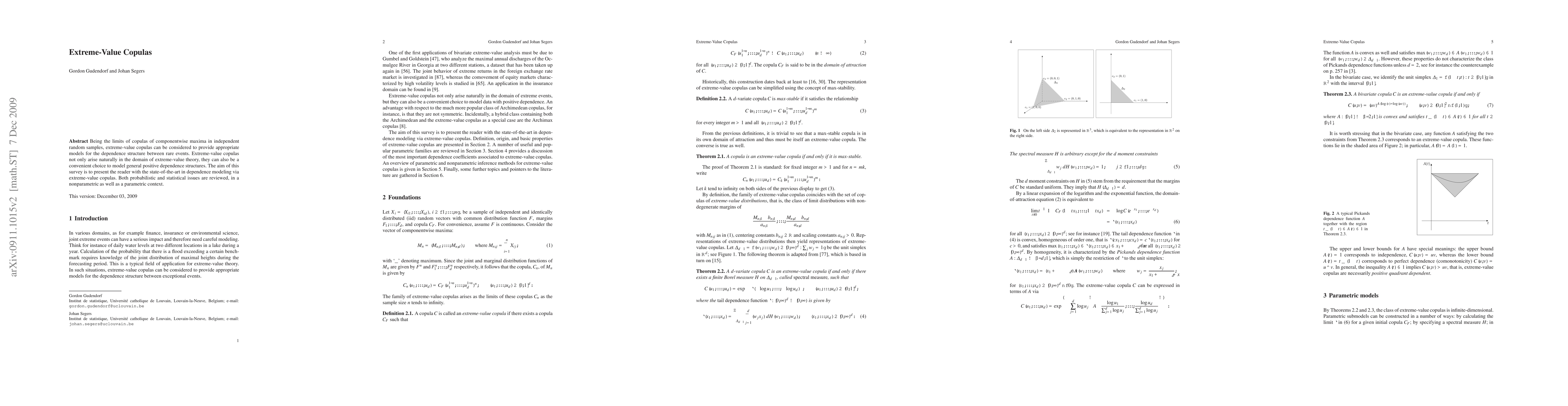 Being the limits of copulas of componentwise maxima in independent random samples, extreme-value copulas can be considered to provide appropriate models for the dependence structure between rare events. Extreme-value copulas not only arise naturally in the domain of extreme-value theory, they can also be a convenient choice to model general positive dependence structures. The aim of this survey is to present the reader with the state-of-the-art in dependence modeling via extreme-value copulas. Both probabilistic and statistical issues are reviewed, in a nonparametric as well as a parametric context.
