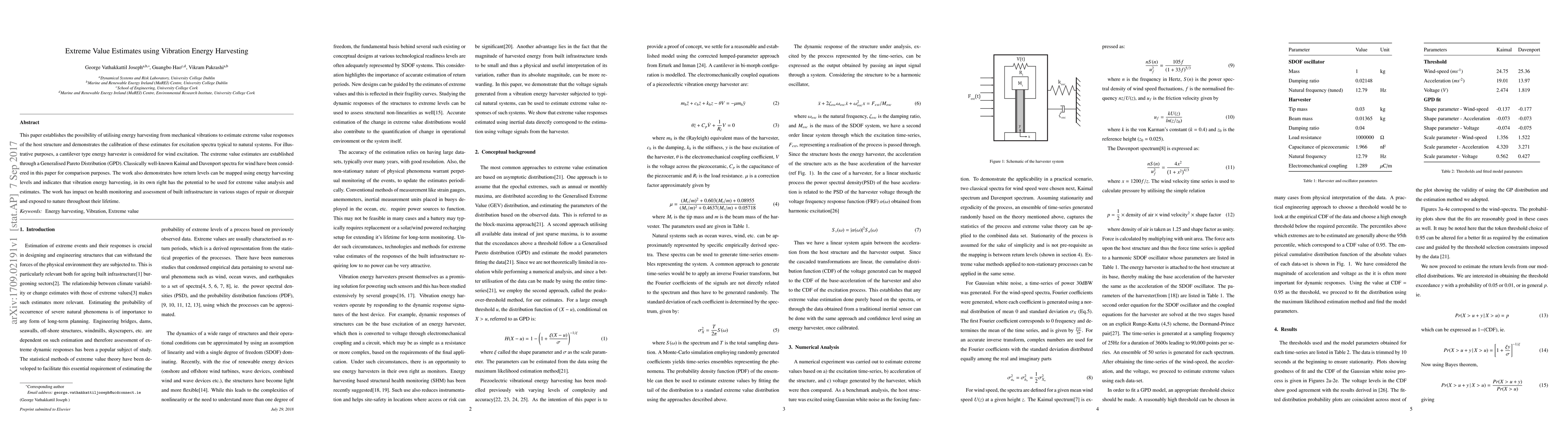 They used a Generalised Pareto Distribution and compared results with traditional wind spectra, showing that vibration energy harvesting can be a new tool for extreme value analysis.
