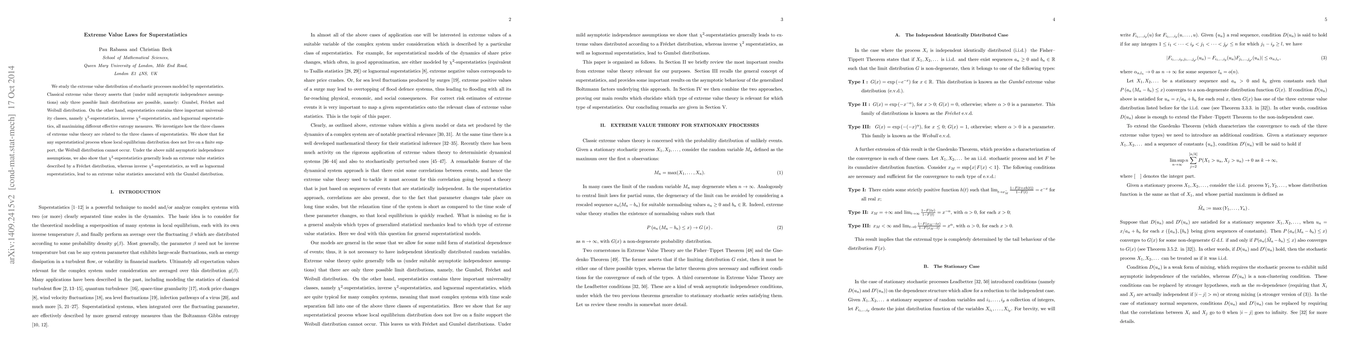 This paper explores the extreme value distribution in superstatistical models, revealing that $\chi^2$-superstatistics typically results in a Fr\'echet distribution, while inverse $\chi^2$-superstatistics and lognormal superstatistics generally lead to a Gumbel distribution. It concludes that the Weibull distribution is not applicable for superstatistical processes without finite support.