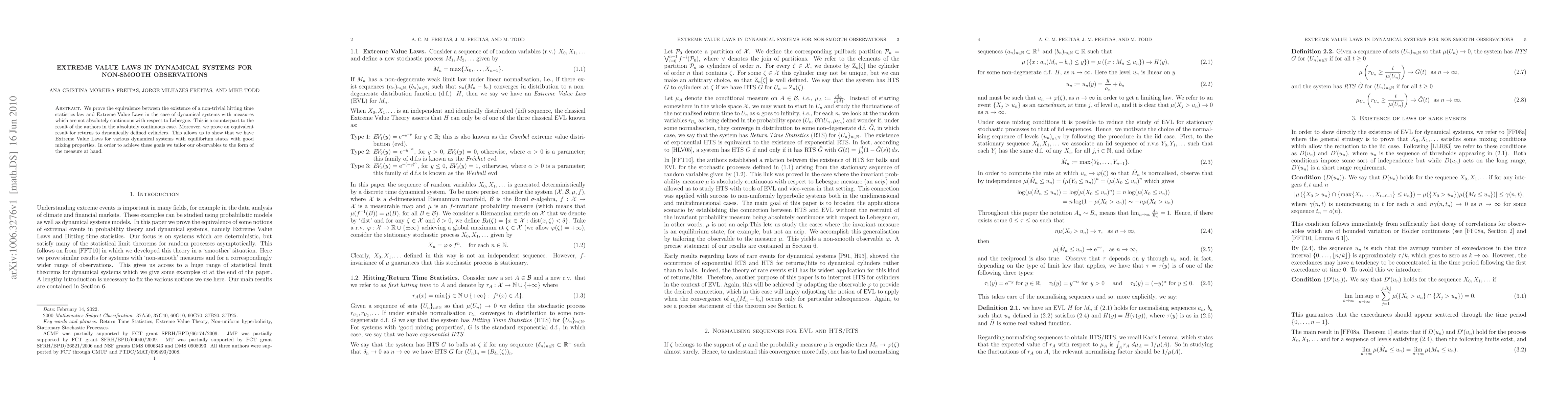 This paper establishes equivalences between non-trivial hitting time statistics and Extreme Value Laws in dynamical systems with non-absolutely continuous measures, extending previous results for absolutely continuous cases. It also demonstrates Extreme Value Laws for returns to dynamically defined cylinders, tailored to the specific measure properties.