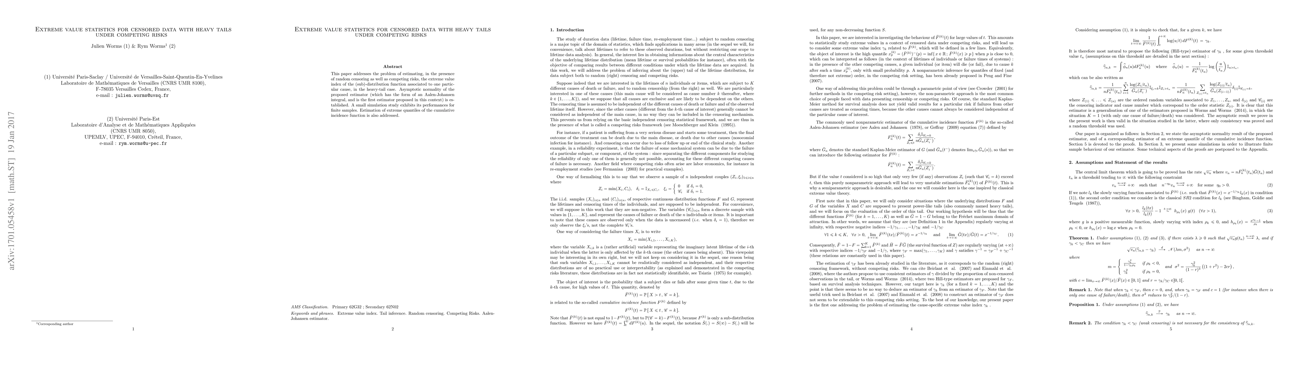 This paper proposes an estimator for the extreme value index in the presence of random censoring and competing risks, particularly for heavy-tailed distributions. The estimator, based on an Aalen-Johansen integral, is shown to be asymptotically normal, and its performance is demonstrated through a small simulation study.