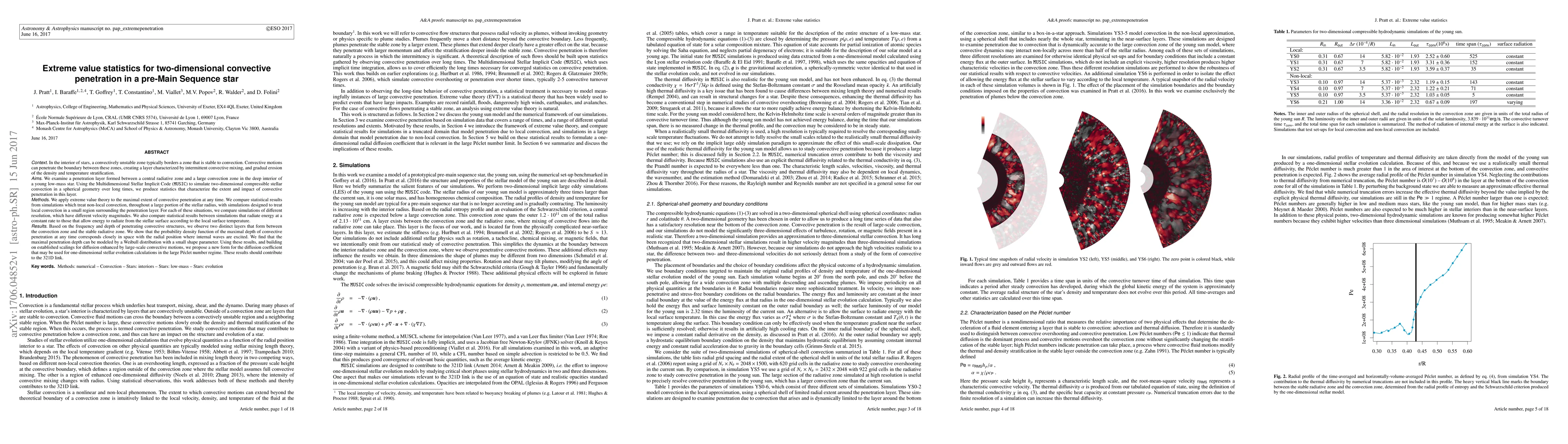 The paper introduces a novel application of extreme value theory to characterize the depth of convective penetration in stellar convection, leading to a proposed diffusion coefficient form for large Péclet number flows in stellar interiors.