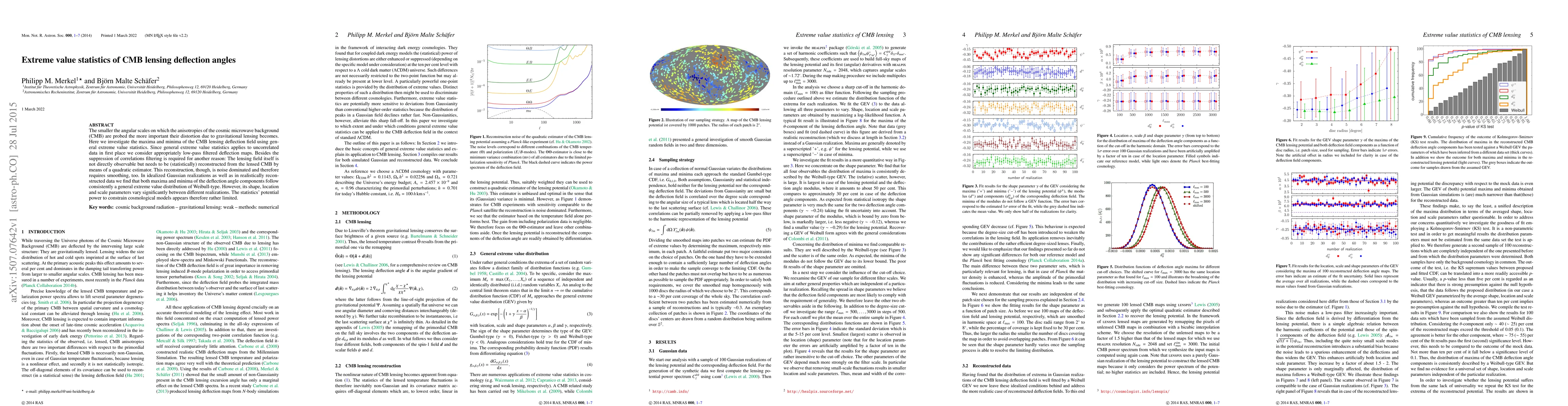 This paper investigates the extreme value statistics of CMB lensing deflection angles, focusing on the maxima and minima of the deflection field. It finds that the deflection angles follow a Weibull-type distribution in both idealized and reconstructed data, though the parameters vary significantly, limiting the statistics' ability to constrain cosmological models.