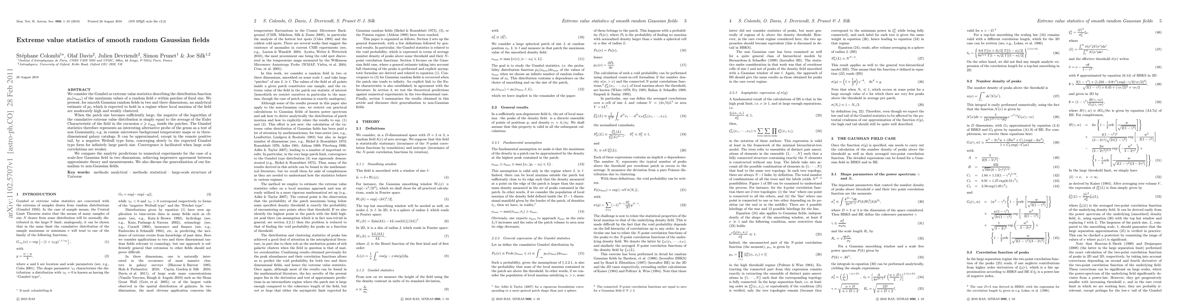 This paper analytically estimates the Gumbel extreme value statistics for smooth Gaussian random fields, providing a method to describe the distribution of maximum values within patches of fixed size. The study reveals that the negative logarithm of the cumulative extreme value distribution approximates the average Euler Characteristic for large patches, offering a novel approach for testing non-Gaussianity in fields like cosmic microwave background maps.