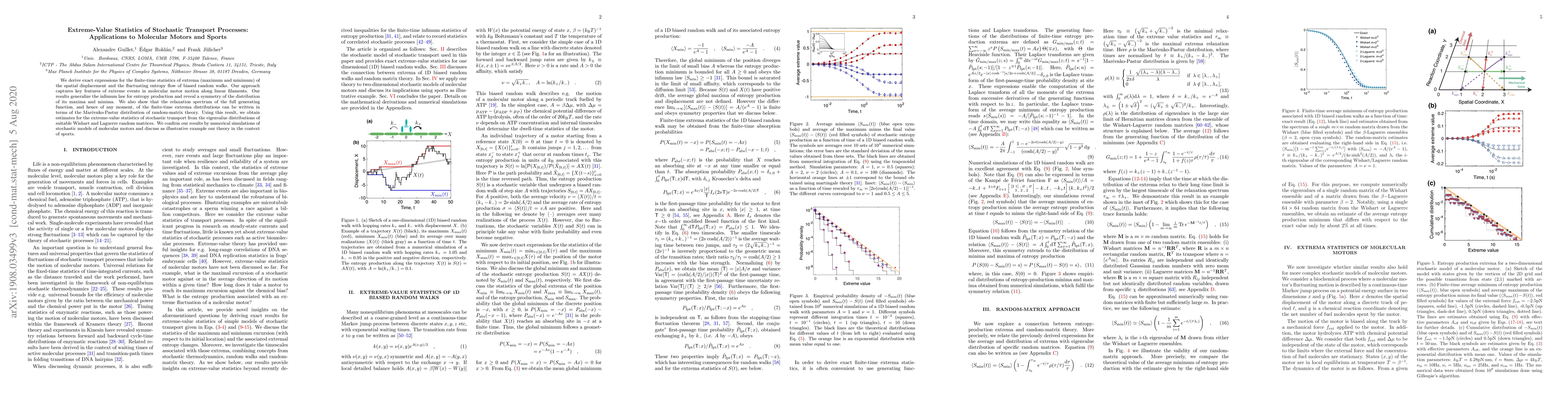 This research provides insights into the extreme-value statistics of stochastic transport processes, which are relevant to molecular motors and potentially applicable to other systems like sports, by offering a theoretical framework that connects random-matrix theory with stochastic processes.