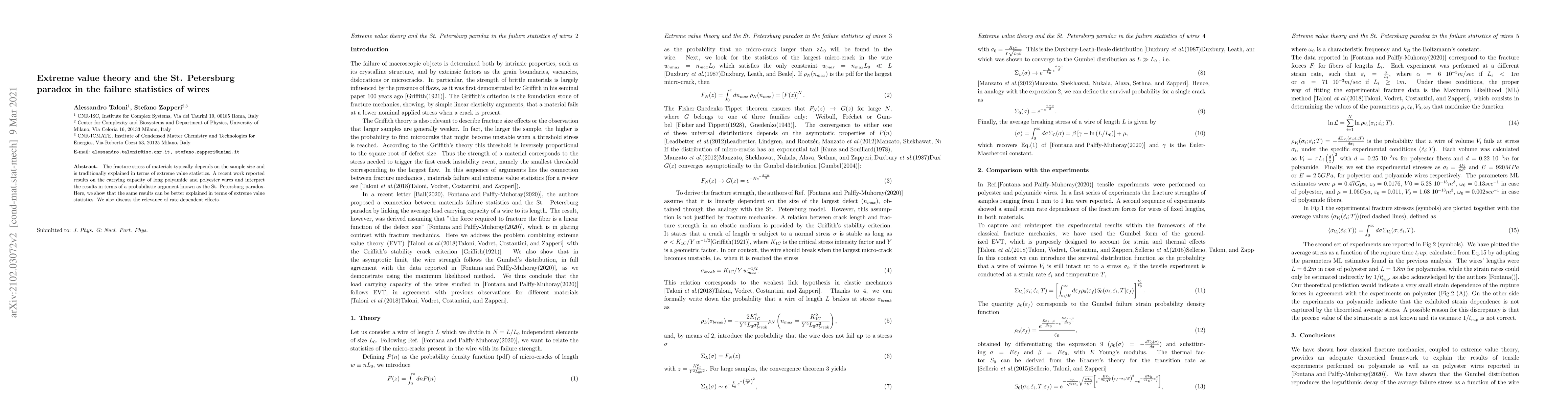 The fracture stress of materials typically depends on the sample size and is traditionally explained in terms of extreme value statistics. A recent work reported results on the carrying capacity of long polyamide and polyester wires and interpret the results in terms of a probabilistic argument known as the St. Petersburg paradox. Here, we show that the same results can be better explained in terms of extreme value statistics. We also discuss the relevance of rate dependent effects.