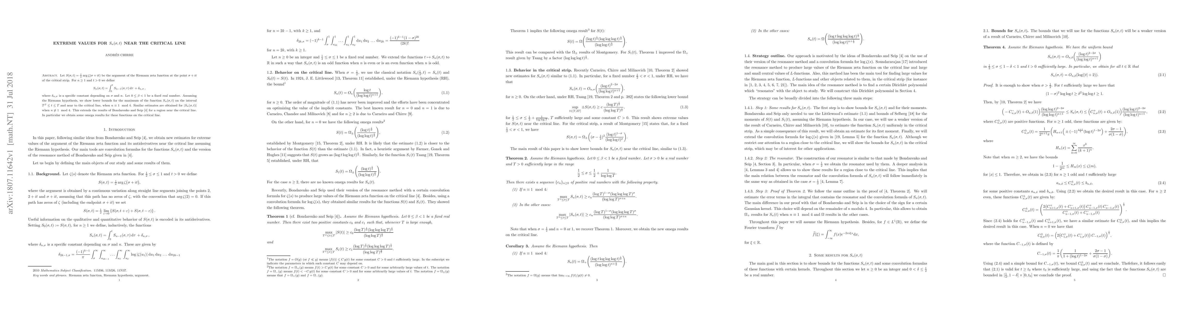 This paper explores extreme values of the function $S_n(\sigma,t)$ near the critical line under the Riemann hypothesis, providing lower bounds for its maximum and estimates for its absolute value, extending previous results for regions near the critical line.