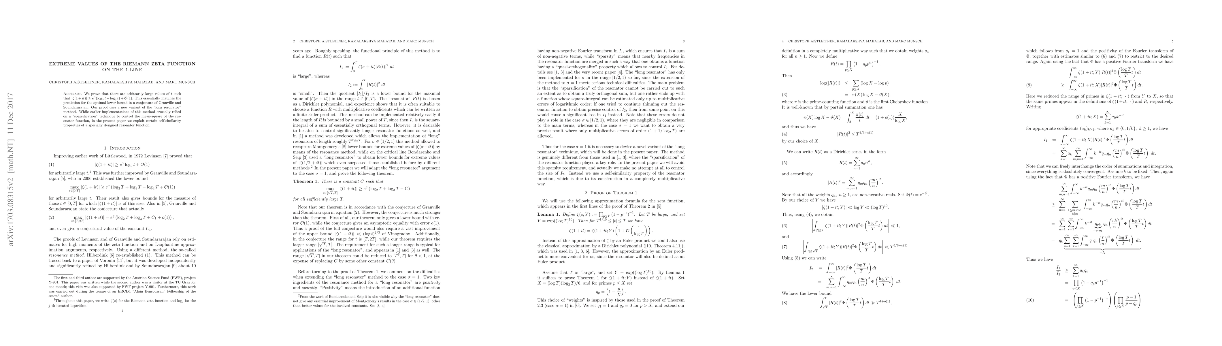 We prove that there are arbitrarily large values of $t$ such that $|\zeta(1+it)| \geq e^{\gamma} (\log_2 t + \log_3 t) + \mathcal{O}(1)$. This essentially matches the prediction for the optimal lower bound in a conjecture of Granville and Soundararajan. Our proof uses a new variant of the "long resonator" method. While earlier implementations of this method crucially relied on a "sparsification" technique to control the mean-square of the resonator function, in the present paper we exploit certain self-similarity properties of a specially designed resonator function.