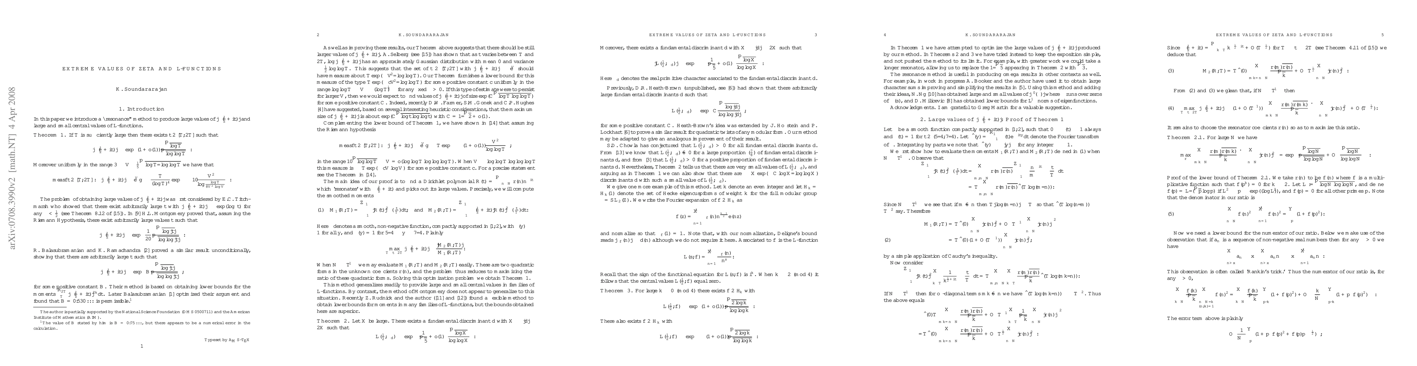 Summary: This paper presents a novel "resonance" method for generating significant values of the Riemann zeta function at critical line points and both large and small central values for general L-functions. The approach provides new insights into the behavior of these complex functions.