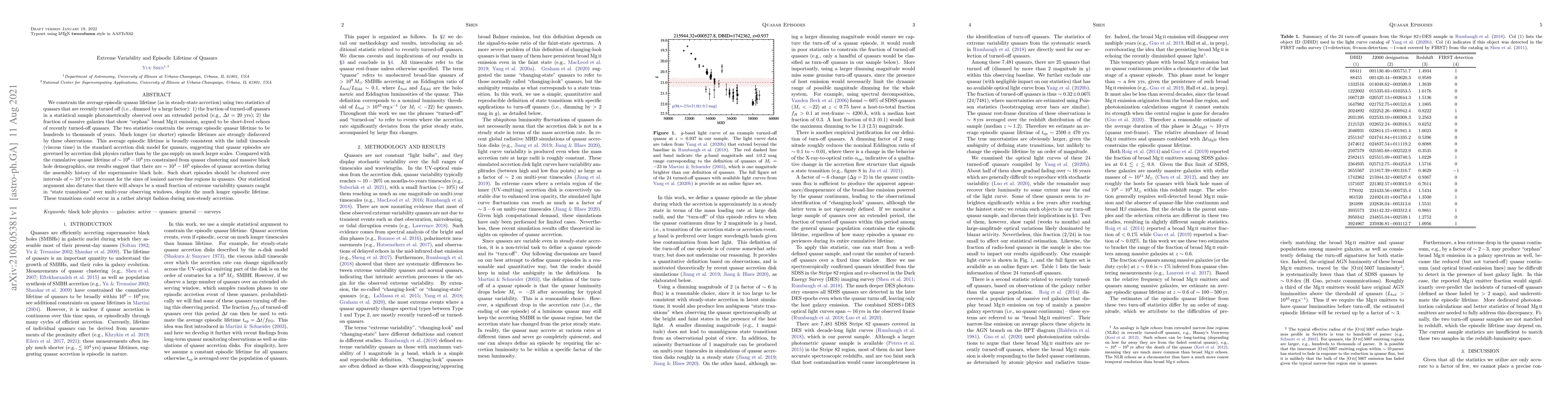 We constrain the average episodic quasar lifetime (as in steady-state accretion) using two statistics of quasars that are recently turned off (i.e., dimmed by a large factor): 1) the fraction of turned-off quasars in a statistical sample photometrically observed over an extended period (e.g., $\Delta t=20$ yrs); 2) the fraction of massive galaxies that show 'orphan' broad MgII emission, argued to be short-lived echoes of recently turned-off quasars. The two statistics constrain the average episodic quasar lifetime to be hundreds to thousands of years. Much longer (or shorter) episodic lifetimes are strongly disfavored by these observations. This average episodic lifetime is broadly consistent with the infall timescale (viscous time) in the standard accretion disk model for quasars, suggesting that quasar episodes are governed by accretion disk physics rather than by the gas supply on much larger scales. Compared with the cumulative quasar lifetime of $\sim 10^6-10^8\,$yrs constrained from quasar clustering and massive black hole demographics, our results suggest that there are $\sim 10^3-10^5$ episodes of quasar accretion during the assembly history of the supermassive black hole. Such short episodes should be clustered over intervals of $\sim 10^4\,$yrs to account for the sizes of ionized narrow-line regions in quasars. Our statistical argument also dictates that there will always be a small fraction of extreme variability quasars caught in 'state transitions' over multi-year observing windows, despite the much longer episodic lifetime. These transitions could occur in a rather abrupt fashion during non-steady accretion.