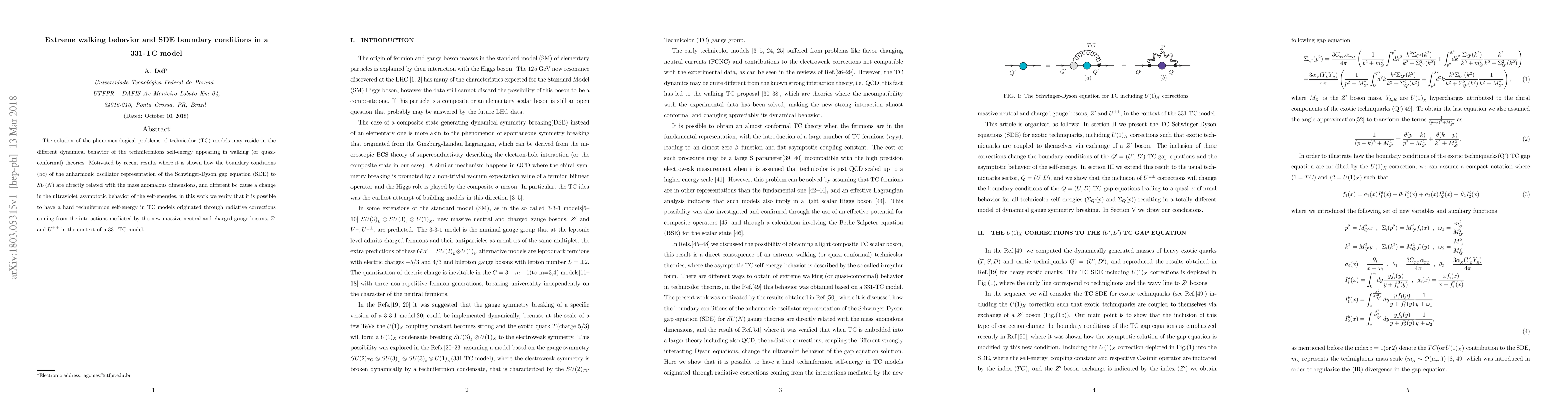 This paper investigates the extreme walking behavior in 331-technicolor (TC) models, focusing on how different boundary conditions of the Schwinger-Dyson gap equation affect the self-energy of technifermions. It finds that radiative corrections from new gauge bosons $Z'$ and $U^{\pm\pm}$ can lead to a hard technifermion self-energy.