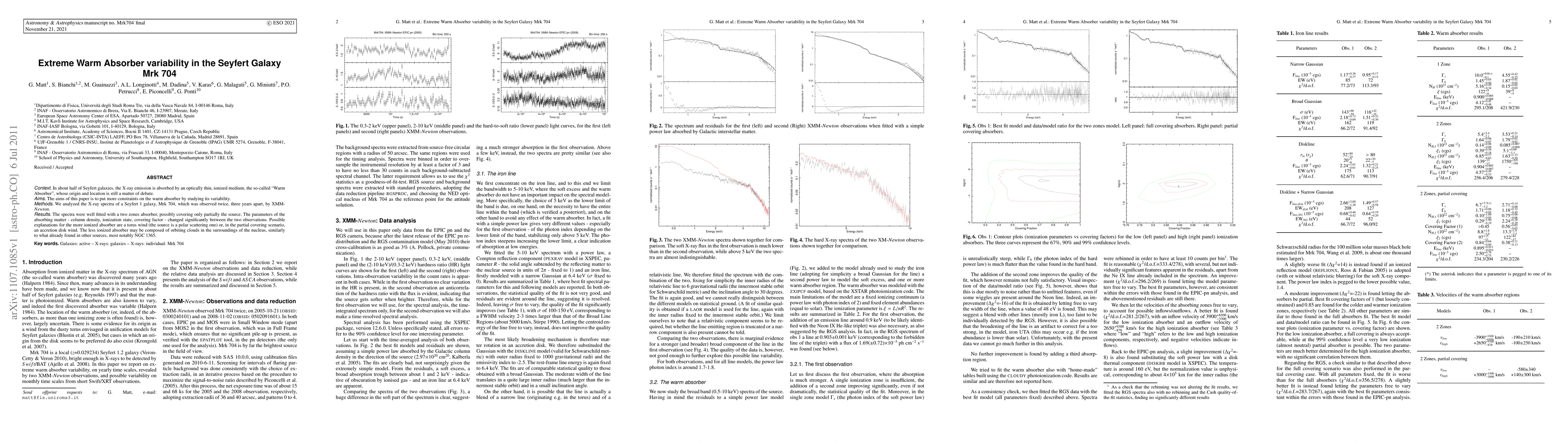 This study analyzes X-ray spectra of Seyfert 1 galaxy Mrk 704 observed by XMM-Newton three years apart. It reveals significant changes in warm absorber parameters, suggesting the absorbing matter could be a torus wind, accretion disk wind, or orbiting clouds around the nucleus.