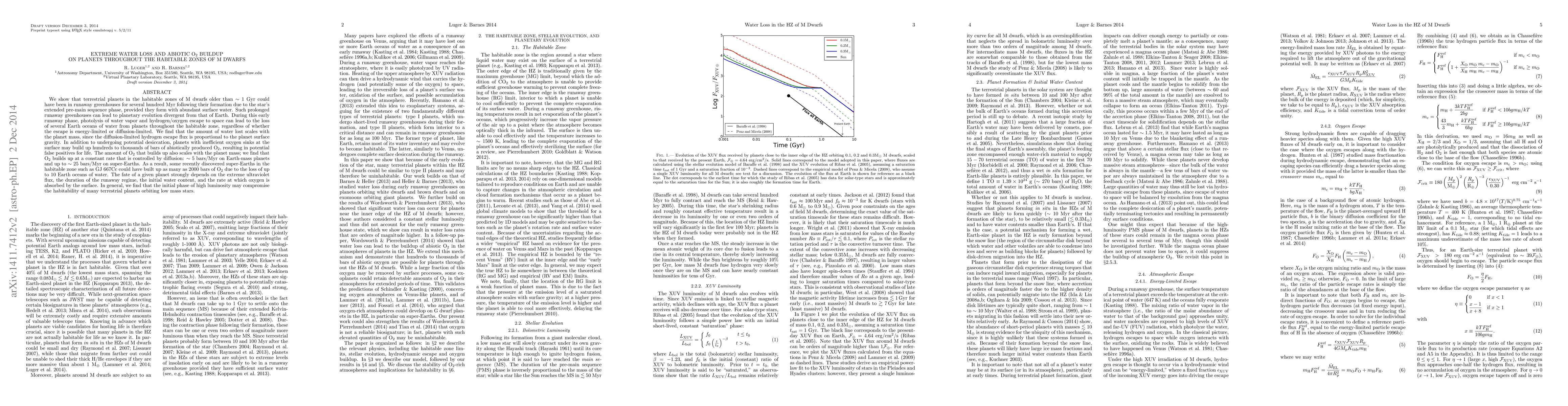 This research demonstrates that terrestrial planets in the habitable zones of M dwarfs older than 1 Gyr may experience runaway greenhouses, leading to extreme water loss and abiotic O$_2$ buildup. The extent of water loss and O$_2$ accumulation depends on the planet mass, initial water content, and the star's extreme ultraviolet flux.