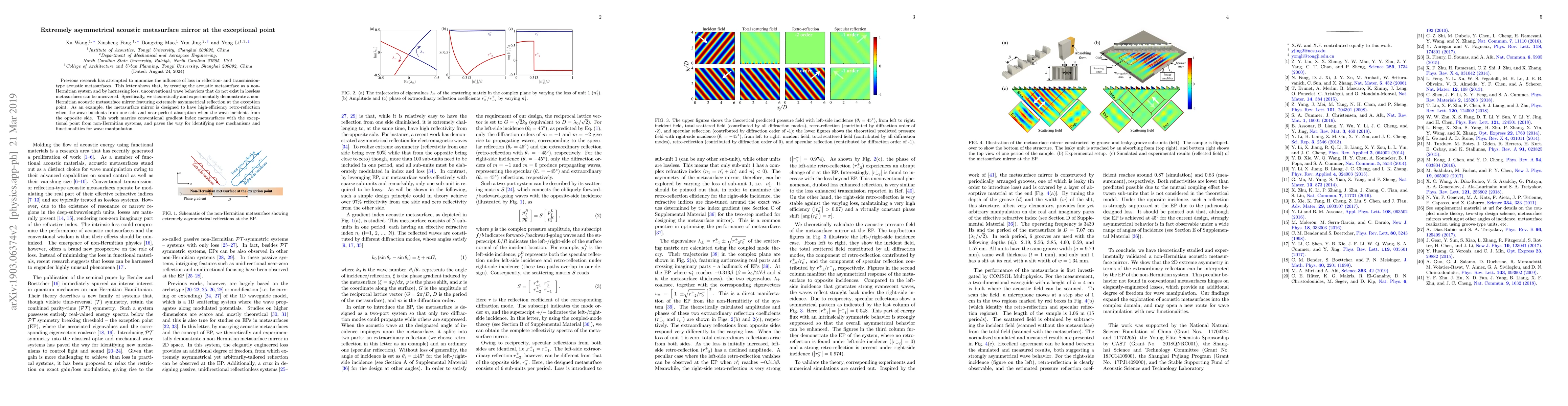 This paper presents a non-Hermitian acoustic metasurface mirror that exhibits highly asymmetrical reflection at an exceptional point, achieving high-efficiency retro-reflection for one-way incidence and complete absorption for the opposite direction, thus merging gradient index metasurfaces with non-Hermitian physics for novel wave manipulation.