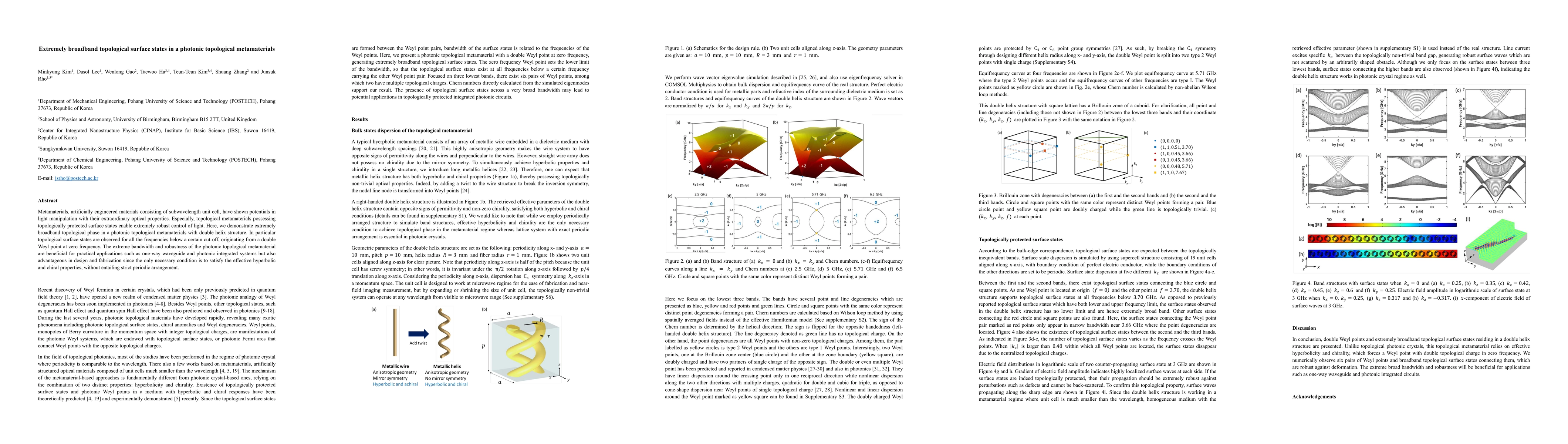 This paper demonstrates extremely broadband topological surface states in photonic topological metamaterials with a double helix structure, showing robustness and control of light across a wide frequency range. The simplicity of design, requiring only effective hyperbolic and chiral properties, makes it practical for applications like one-way waveguides and photonic systems.