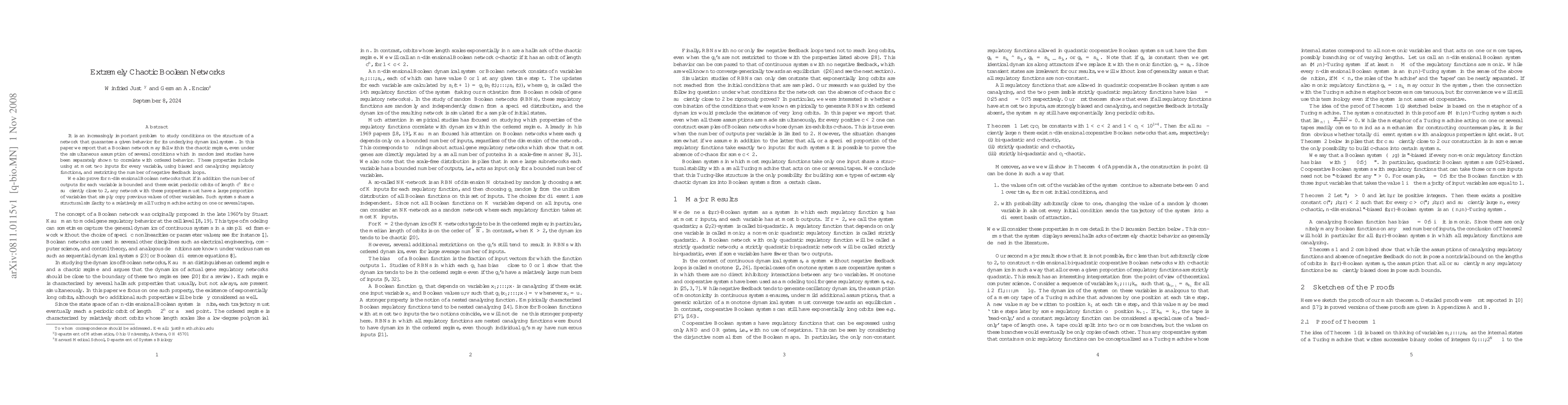 It is an increasingly important problem to study conditions on the structure of a network that guarantee a given behavior for its underlying dynamical system. In this paper we report that a Boolean network may fall within the chaotic regime, even under the simultaneous assumption of several conditions which in randomized studies have been separately shown to correlate with ordered behavior. These properties include using at most two inputs for every variable, using biased and canalyzing regulatory functions, and restricting the number of negative feedback loops. We also prove for n-dimensional Boolean networks that if in addition the number of outputs for each variable is bounded and there exist periodic orbits of length c^n for c sufficiently close to 2, any network with these properties must have a large proportion of variables that simply copy previous values of other variables. Such systems share a structural similarity to a relatively small Turing machine acting on one or several tapes.