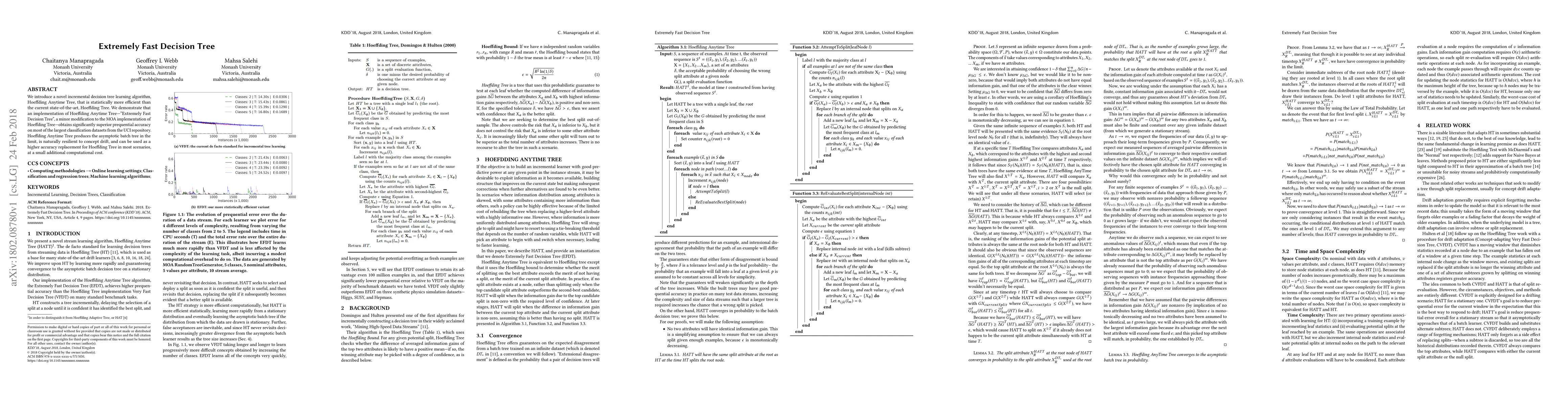 The paper introduces the Hoeffding Anytime Tree, an incremental decision tree learning algorithm that outperforms the existing Hoeffding Tree in terms of statistical efficiency and prequential accuracy on large classification datasets. The algorithm is a minor modification of the MOA implementation, offering higher accuracy with minimal extra computational cost.