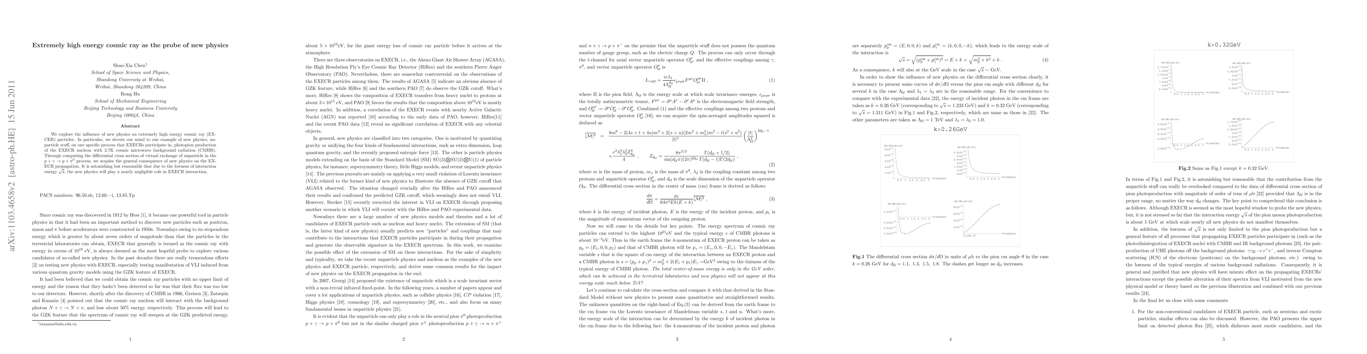 We explore the influence of new physics on extremely high energy cosmic ray (EXCER) particles. In particular, we devote our mind to one example of new physics, unparticle stuff, on one specific process that EXECRs participate in, photopion production of the EXECR nucleon with 2.7K cosmic microwave background radiation (CMBR). Through computing the differential cross section of virtual exchange of unparticle in the $p+\gamma\to p+ \pi^0$ process, we acquire the general consequence of new physics on the EXECR propagation. It is astonishing but reasonable that due to the lowness of interaction energy $\sqrt{s}$, the new physics will play a nearly negligible role in EXECR interaction.