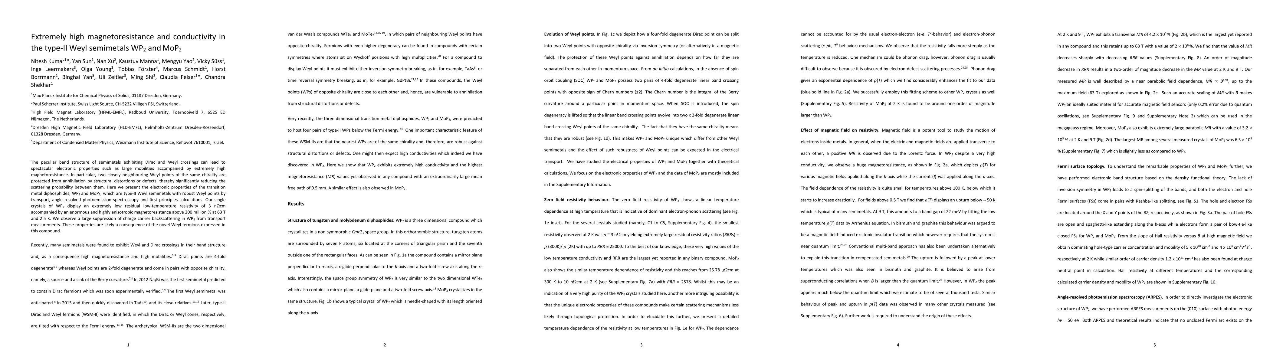 The paper presents detailed transport and ARPES measurements, supported by first-principles calculations, to demonstrate the novel electronic properties of WP2 as a type-II Weyl semimetal.