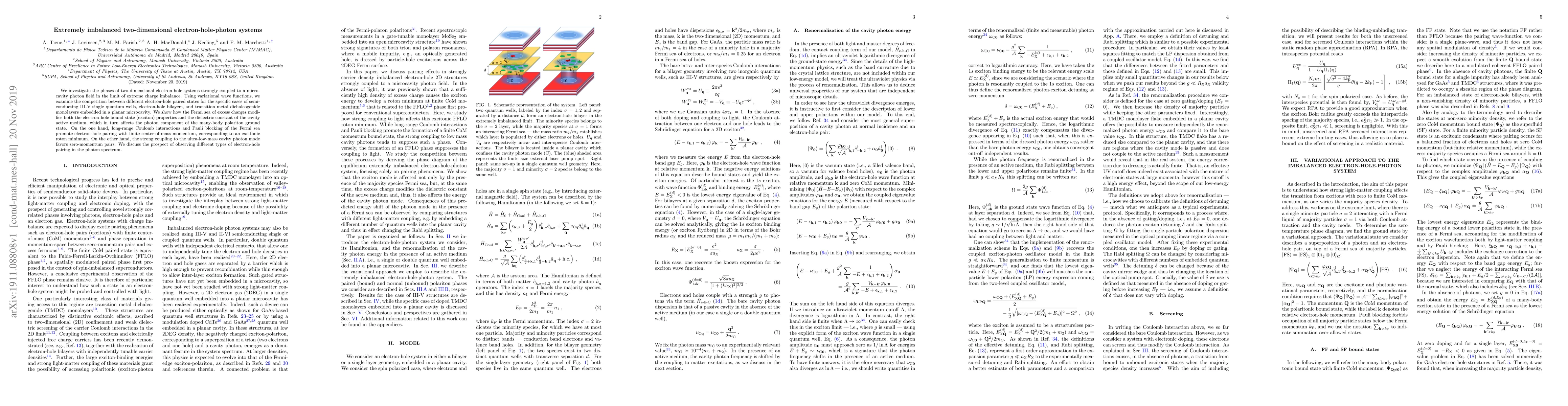 This paper explores the phases of two-dimensional electron-hole systems strongly coupled to a microcavity photon field under extreme charge imbalance, revealing the interplay between excitonic rotons and zero-momentum pairs, and the impact on the photon spectrum. The study uses variational wave functions to analyze different material systems and highlights how the Fermi sea modifies exciton properties and the dielectric constant of the cavity.