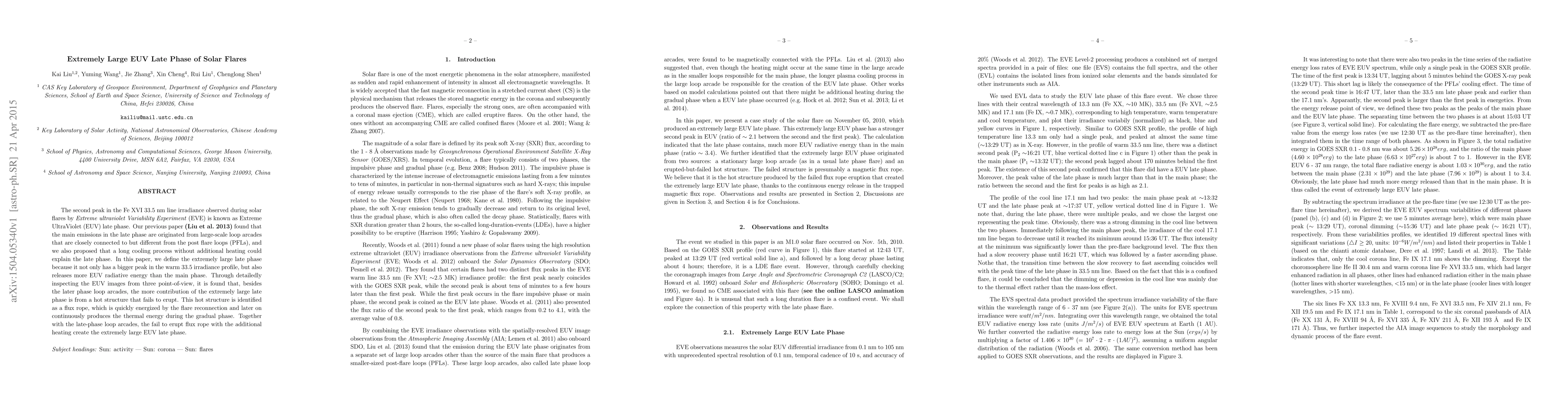 This paper investigates the Extremely Large EUV Late Phase of solar flares, identifying a significant second peak in Fe XVI 33.5 nm line irradiance. It finds that this phase is primarily driven by a large-scale loop arcade and a non-erupting flux rope, which continuously produces thermal energy, contributing to the increased EUV radiative energy compared to the main flare phase.