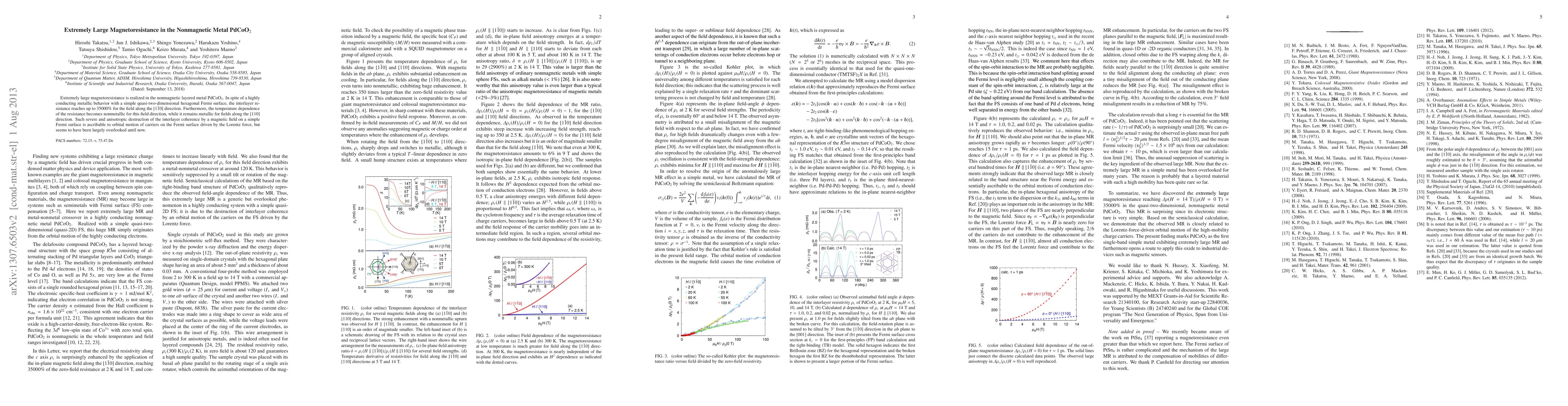 Extremely large magnetoresistance is realized in the nonmagnetic layered metal PdCoO2. In spite of a highly conducting metallic behavior with a simple quasi-two-dimensional hexagonal Fermi surface, the interlayer resistance reaches up to 35000% for the field along the [1-10] direction. Furthermore, the temperature dependence of the resistance becomes nonmetallic for this field direction, while it remains metallic for fields along the [110] direction. Such severe and anisotropic destruction of the interlayer coherence by a magnetic field on a simple Fermi surface is ascribable to orbital motion of carriers on the Fermi surface driven by the Lorentz force, but seems to have been largely overlooked until now.