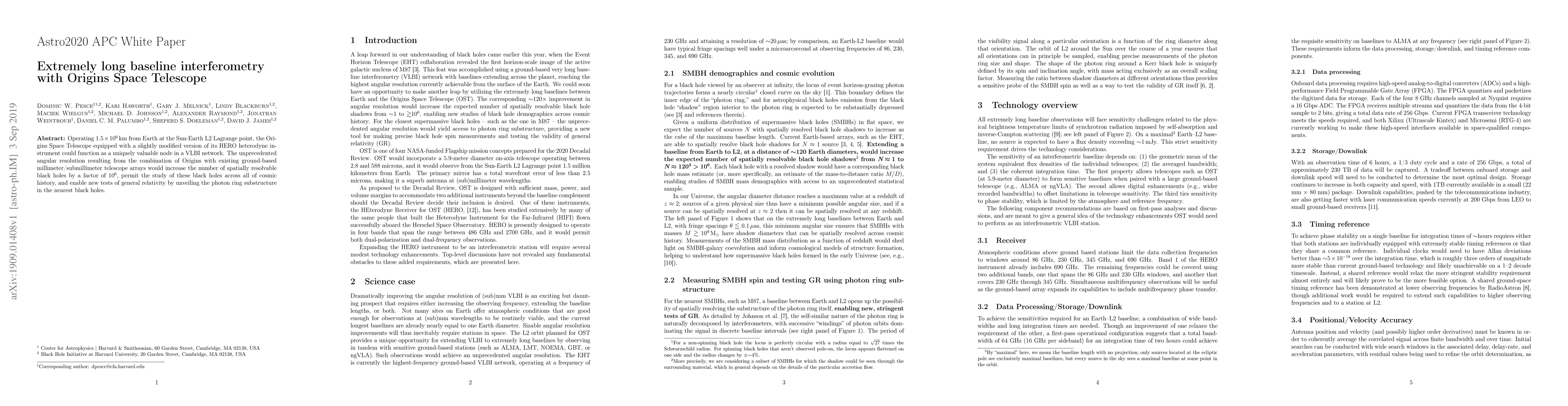 The Origins Space Telescope at the L2 point, with its HERO instrument, could join a VLBI network to achieve unprecedented angular resolution, vastly increasing the study of black holes and testing general relativity through detailed photon ring observations.