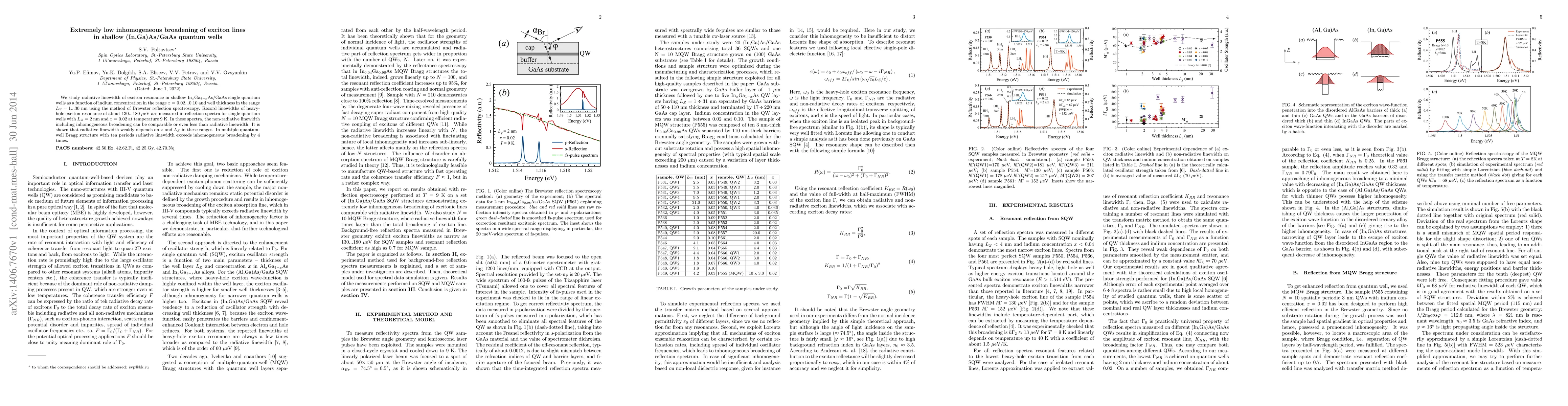 Researchers studied shallow InGaAs/GaAs quantum wells with varying indium concentrations and well thicknesses to find extremely low inhomogeneous broadening of exciton lines. They measured record linewidths of 130-180 μeV, which were comparable or even less than radiative linewidth.