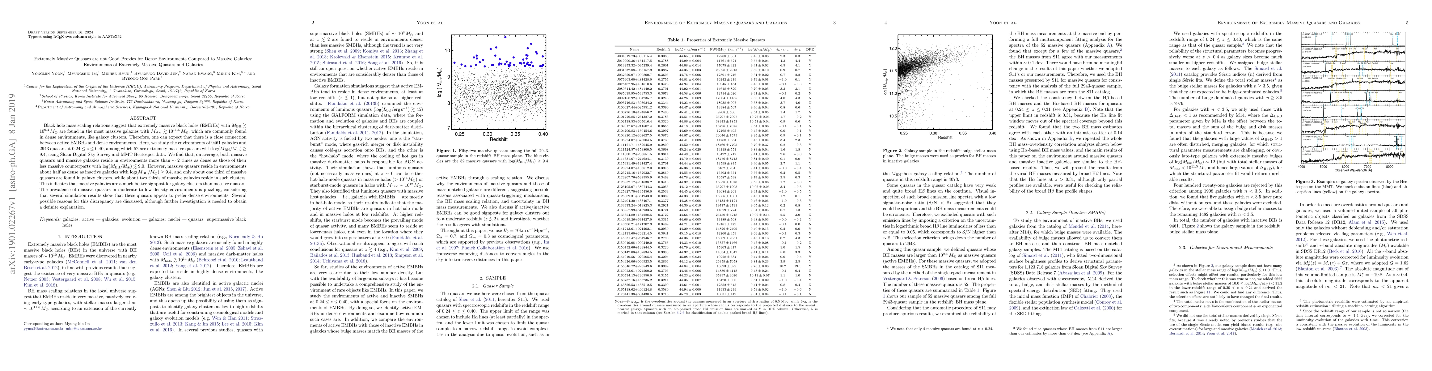 This study investigates the environments of extremely massive quasars (EMQs) and galaxies, finding that while both types are found in dense environments, EMQs are significantly less common in galaxy clusters compared to similarly massive galaxies. This suggests that massive galaxies are better indicators of dense environments than EMQs, despite theoretical predictions.