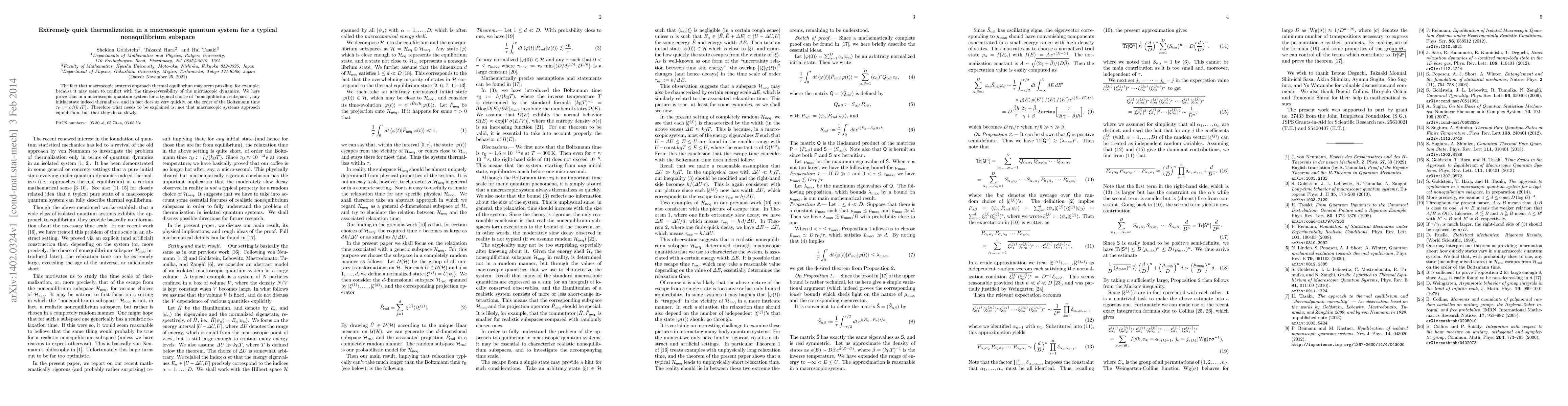 This paper demonstrates that in a macroscopic quantum system, any initial state within a typical nonequilibrium subspace rapidly thermalizes on the order of the Boltzmann time, challenging the notion that thermalization is slow. The findings suggest that the speed of thermalization needs to be explained rather than the occurrence of thermalization itself.
