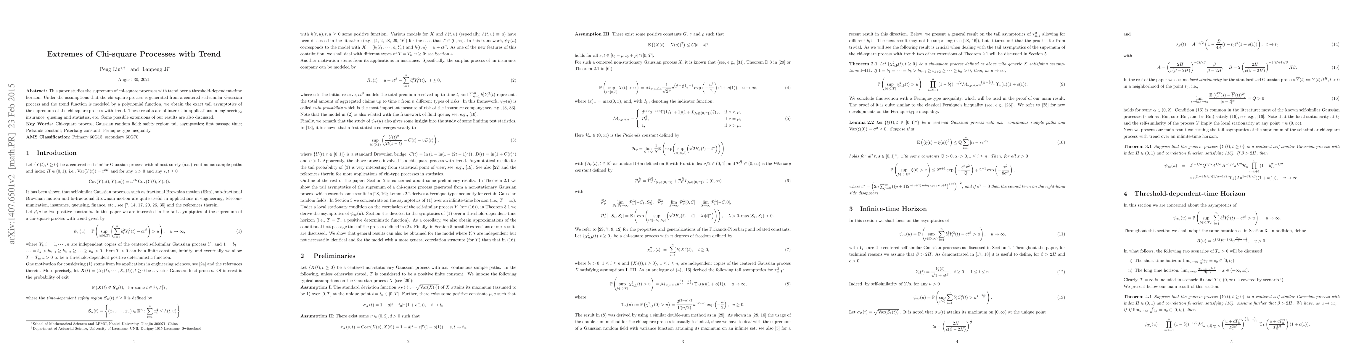 This paper investigates the supremum of a chi-square process with a polynomial trend over a threshold-dependent time horizon, deriving exact tail asymptotics under self-similar Gaussian process assumptions. The findings are relevant for applications in engineering, insurance, queueing, and statistics.