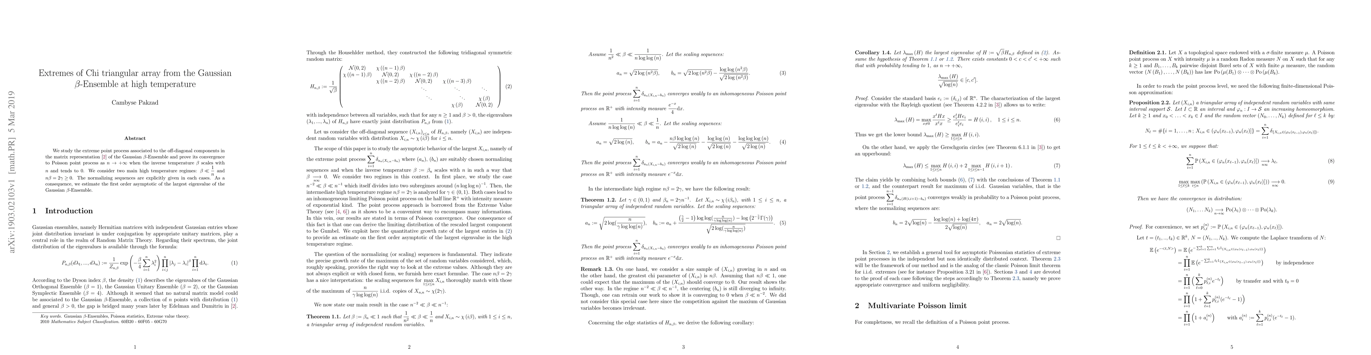This research paper investigates the behavior of a Gaussian beta-Ensemble at high temperatures, proving convergence to a Poisson point process for specific temperature regimes.