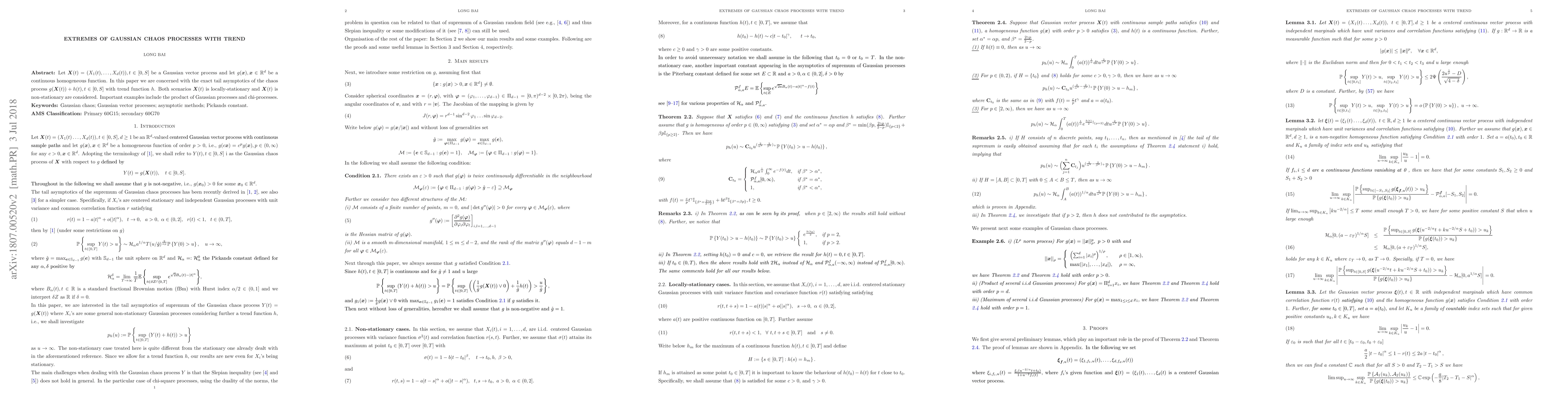 Let $\boldsymbol{X}(t)=(X_1(t),\ldots,X_d(t)), t\in [0,S]$ be a Gaussian vector process and let $g(\boldsymbol{x}),\boldsymbol{x}\in\mathbb{R}^d$ be a continuous homogeneous function. In this paper we are concerned with the exact tail asymptotics of the chaos process $g(\boldsymbol{X}(t))+ h(t),t\in [0,S]$ with trend function $h$. Both scenarios $\boldsymbol{X}(t)$ is locally-stationary and $\boldsymbol{X}(t)$ is non-stationary are considered. Important examples include the product of Gaussian processes and chi-processes.