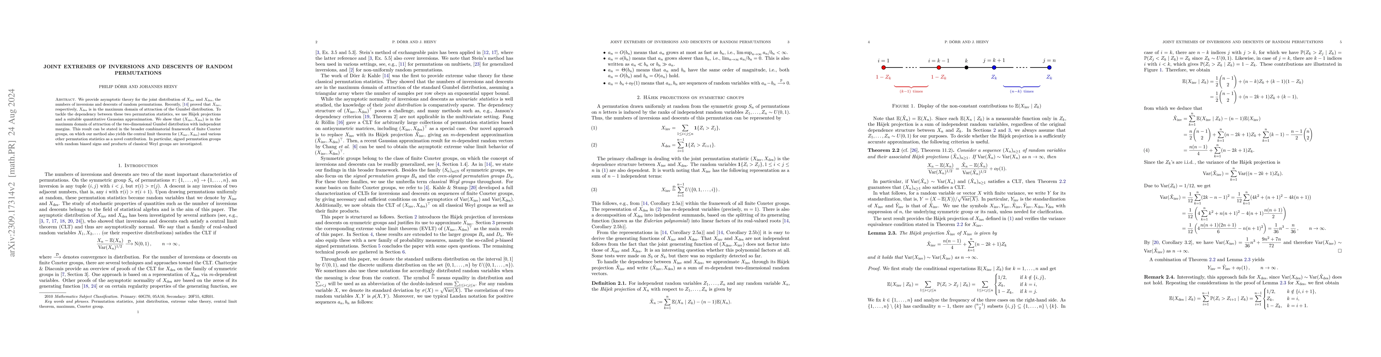 This paper extends the central limit theorem and extreme value distribution for the joint statistics of inversions and descents on finite Coxeter groups, using H\'ajek projections and Gaussian approximations. It also demonstrates the robustness of these results under biased random sign choices on signed permutation groups.
