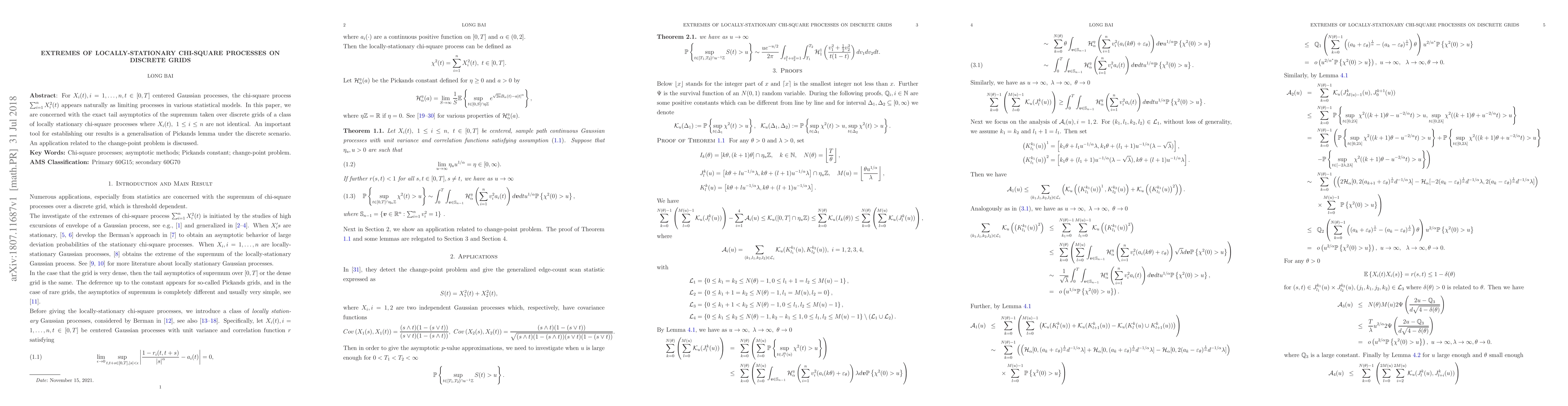 This paper investigates the exact tail asymptotics of the supremum of locally stationary chi-square processes over discrete grids, employing a generalized Pickands lemma. An application to the change-point problem is also presented.