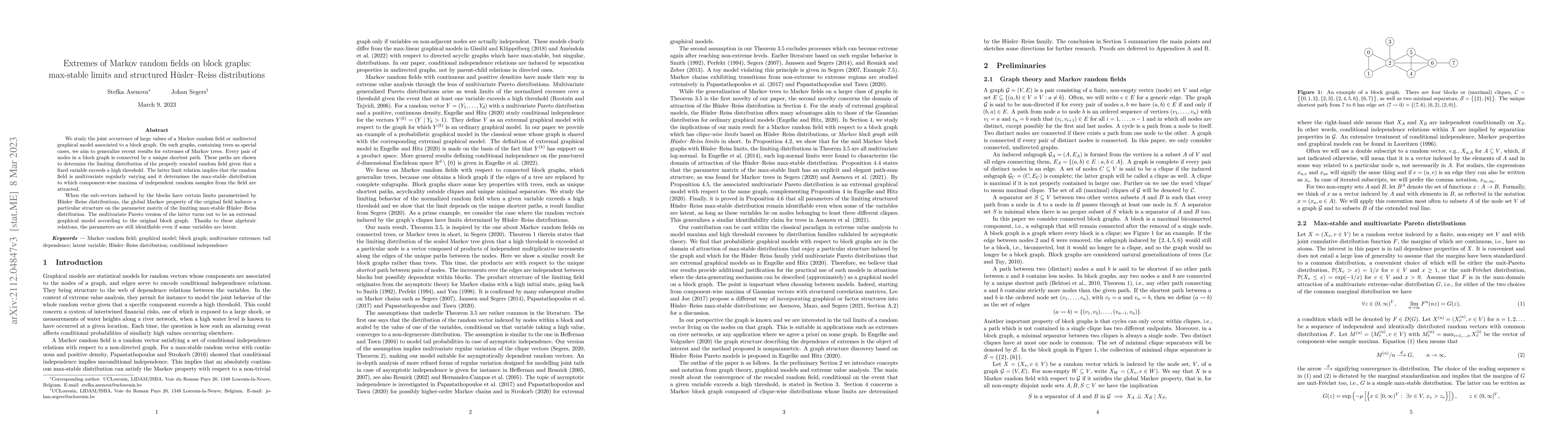 This paper investigates the extremes of Markov random fields on block graphs, showing that the shortest paths between nodes determine the limiting distribution of large values. The study reveals that the field converges to a max-stable H\"usler-Reiss distribution, with the global Markov property inducing a structured parameter matrix for the limiting distribution, even when some variables are latent.