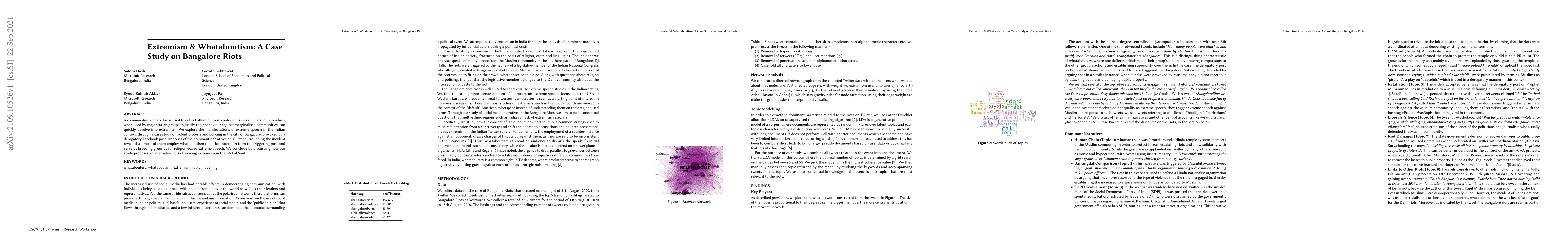 A common diversionary tactic used to deflect attention from contested issues is whataboutery which, when used by majoritarian groups to justify their behaviour against marginalised communities, can quickly devolve into extremism. We explore the manifestations of extreme speech in the Indian context, through a case study of violent protests and policing in the city of Bangalore, provoked by a derogatory Facebook post. Analyses of the dominant narratives on Twitter surrounding the incident reveal that, most of them employ whataboutism to deflect attention from the triggering post and serve as breeding grounds for religion-based extreme speech. We conclude by discussing how our study proposes an alternative lens of viewing extremism in the Global South.