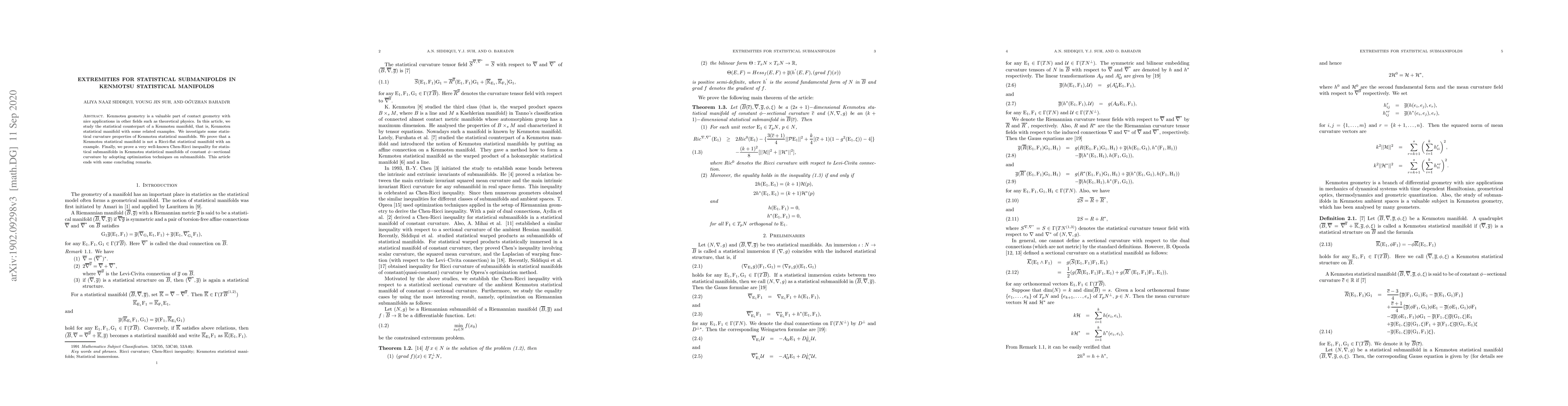 This paper explores the statistical properties of Kenmotsu statistical manifolds, proving they cannot be Ricci-flat and establishing a Chen-Ricci inequality for statistical submanifolds within these manifolds, utilizing optimization techniques. The work concludes with final remarks on its implications.