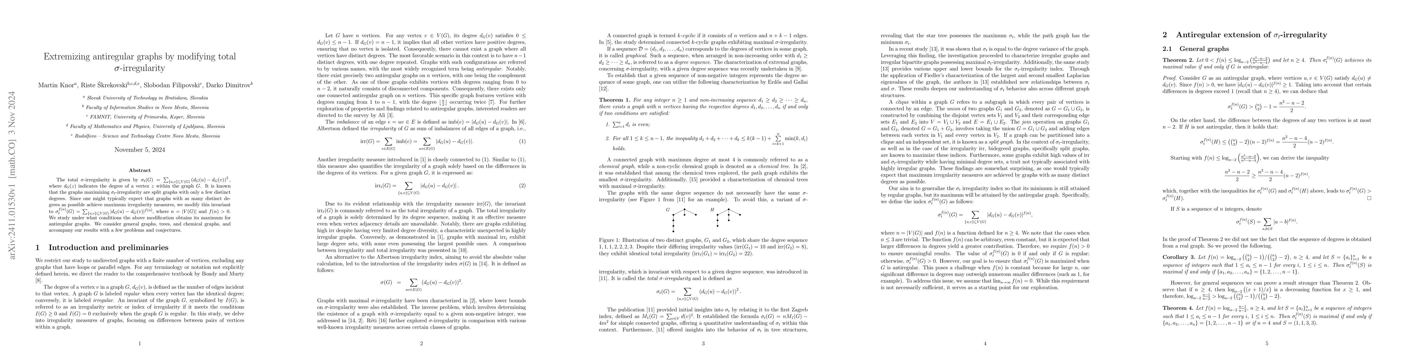 This paper explores a modified version of total $\sigma$-irregularity, termed $\IR(G)$, which aims to maximize irregularity by emphasizing the difference in vertex degrees. It investigates when this modified measure achieves its maximum value in antiregular graphs and discusses implications for general, tree, and chemical graphs, along with open problems and conjectures.