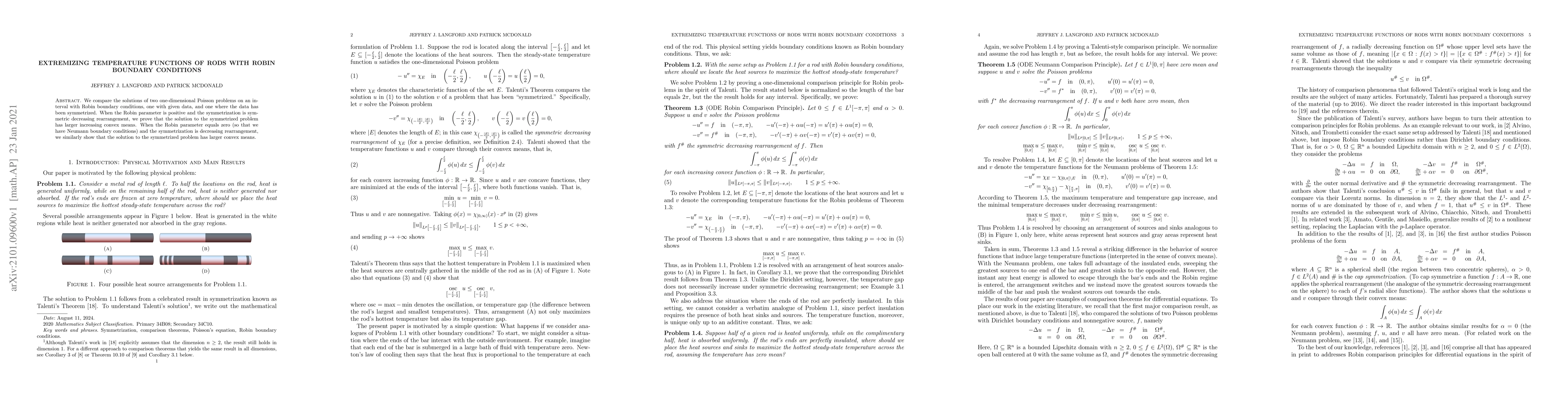 This paper compares solutions of two one-dimensional Poisson problems with Robin boundary conditions, showing that symmetrized data leads to solutions with larger increasing convex means when the Robin parameter is positive, and larger convex means when it equals zero.