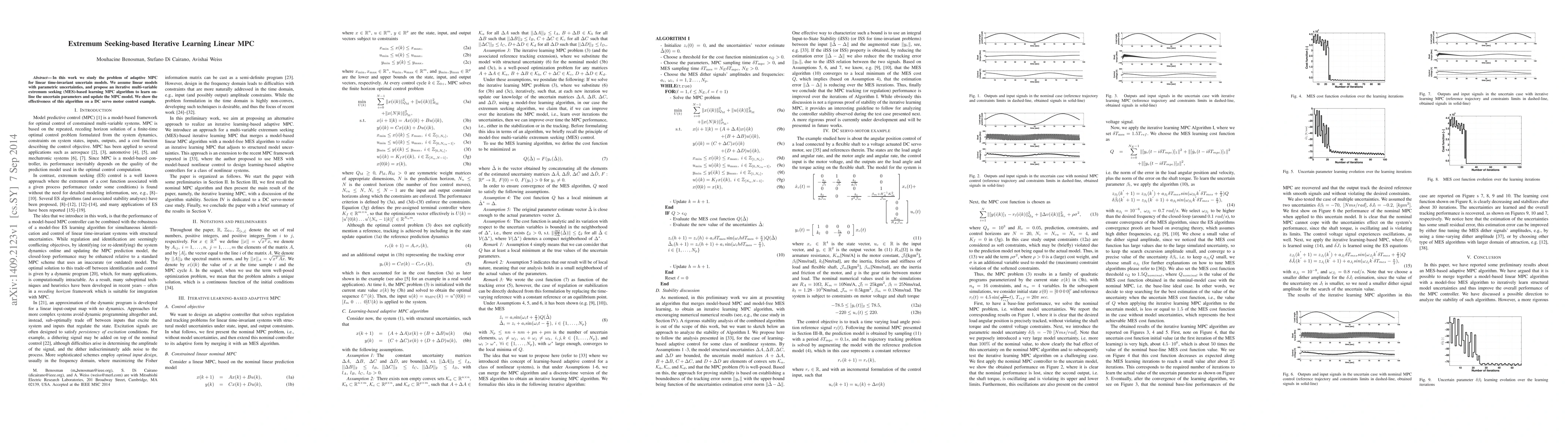 The paper proposes an iterative learning linear Model Predictive Control (MPC) algorithm that merges model-based MPC with model-free Extremum Seeking (ES) control to iteratively learn structural model uncertainties, improving MPC performance over time.
