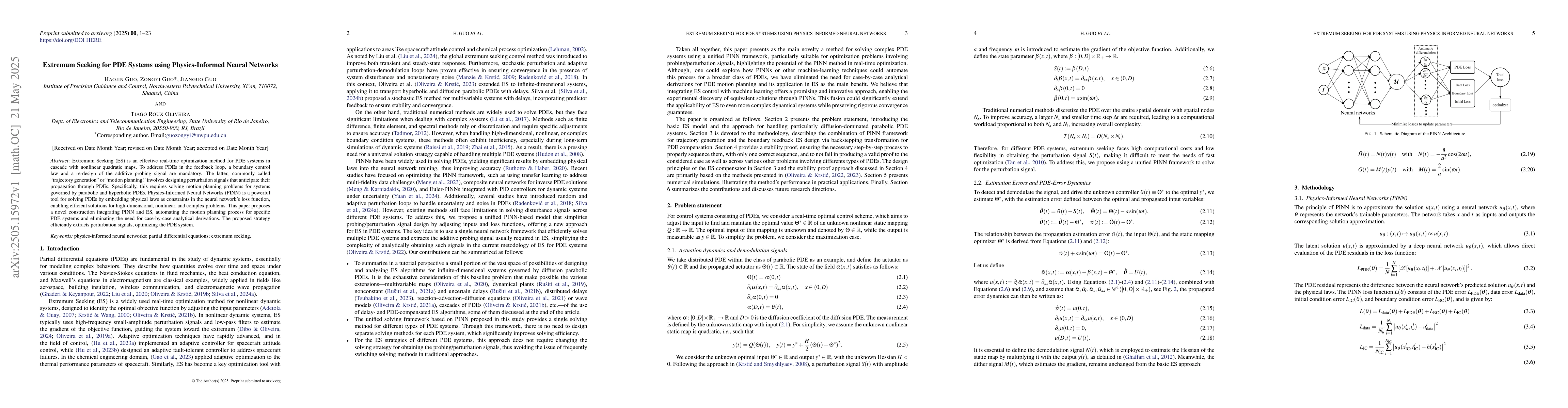 The research proposes a novel construction that integrates Physics-Informed Neural Networks (PINN) with Extremum Seeking (ES), automating the motion planning process for specific PDE systems and eliminating the need for case-by-case analytical derivations.