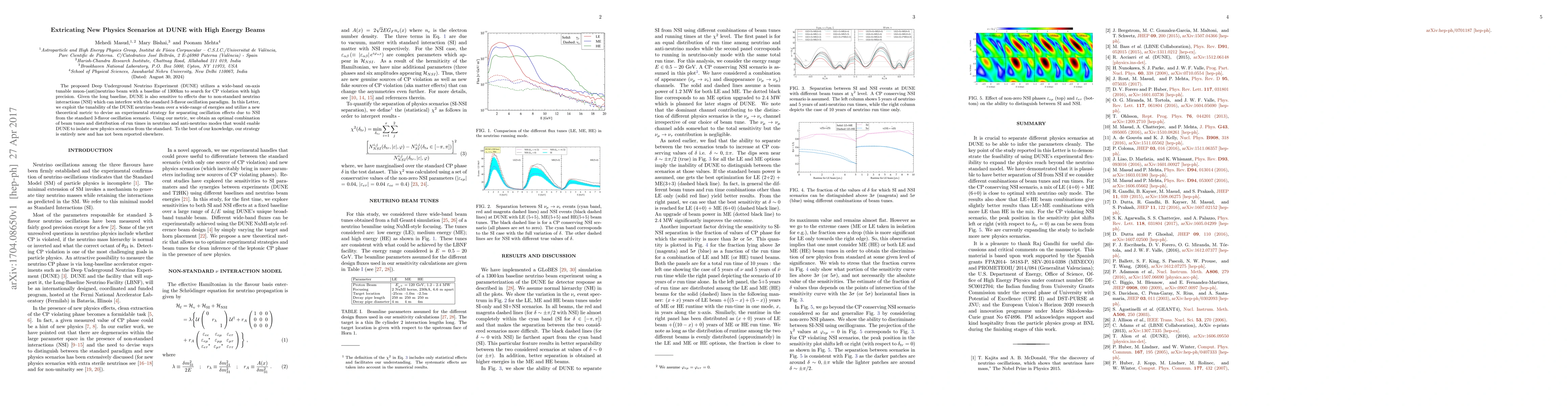The DUNE experiment aims to detect CP violation and explore non-standard neutrino interactions using a tunable high-energy neutrino beam. A novel theoretical metric is proposed to distinguish these effects from standard 3-flavor oscillations, optimizing beam settings and run times to isolate new physics scenarios.