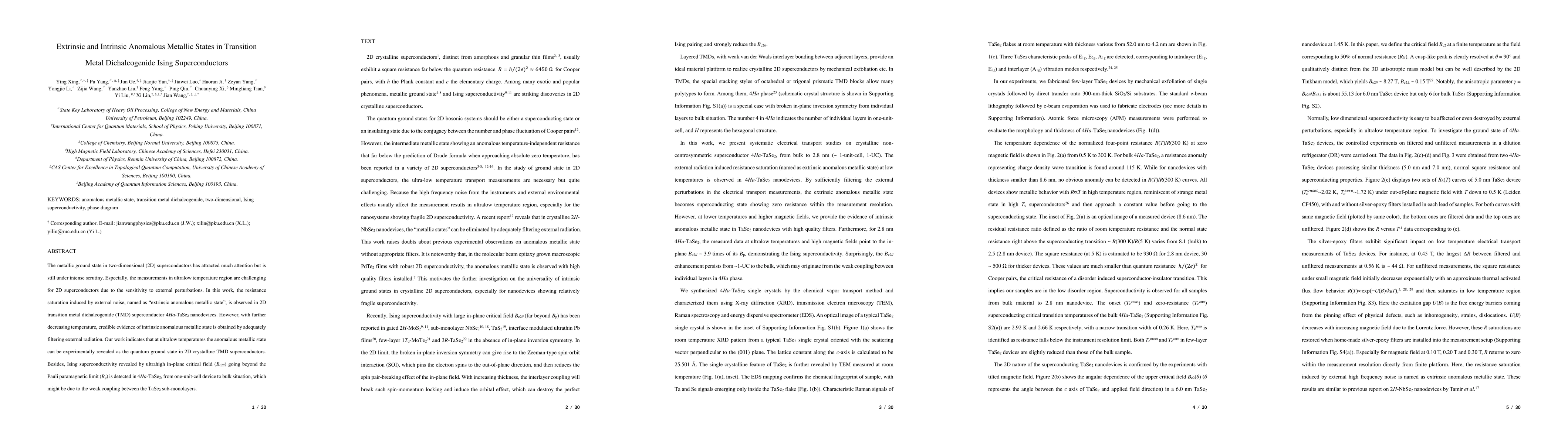 This paper investigates the metallic states in 2D transition metal dichalcogenide superconductors, observing an "extrinsic anomalous metallic state" due to external noise and an "intrinsic anomalous metallic state" at ultralow temperatures. It also reveals Ising superconductivity in 4Ha-TaSe2 with a critical field exceeding the Pauli limit, suggesting weak coupling between layers.