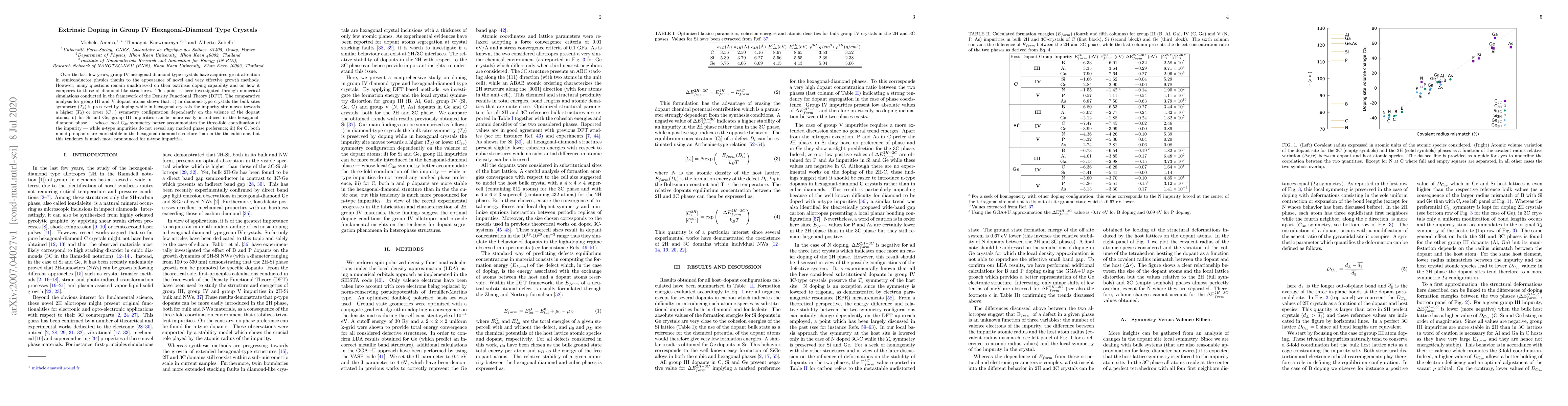 Researchers used numerical simulations to study the extrinsic doping of group IV hexagonal-diamond type crystals, finding that different dopant atoms affect symmetry and ease of introduction in these materials compared to diamond-like structures.