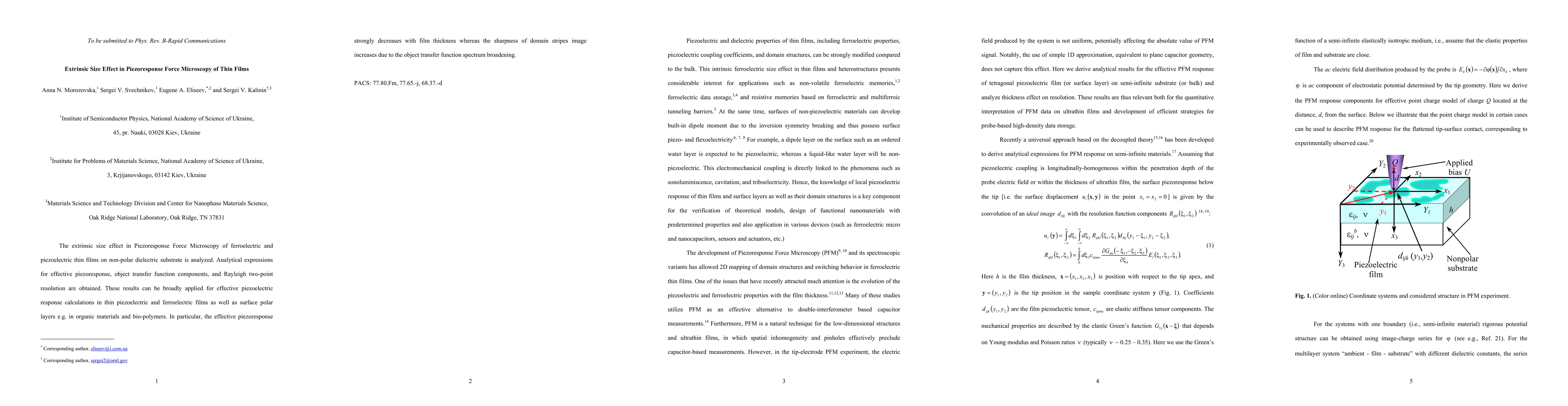 This work introduces a novel analytical approach to understanding and quantifying the extrinsic size effect in PFM imaging of thin films, offering improved accuracy and applicability for various materials and systems.
